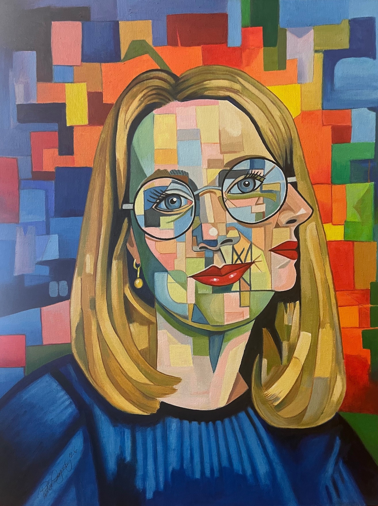 This painting, simply called “Love,” is a cubist portrait of Svitlana, a Ukrainian woman I befriended in 2023. She’s in her early 50s, and this painting captures her essence so perfectly.